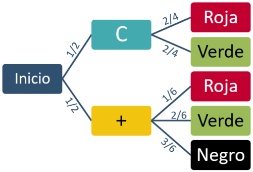 Dibujamos el diagrama de árbol con todas las opciones y sus probabilidades.