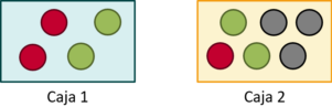 Tenemos dos cajas con bolas de colores dentro. La primera caja tiene dos bolas rojas y dos verdes. La segunda caja tiene una bola roja, dos verdes y tres negras.